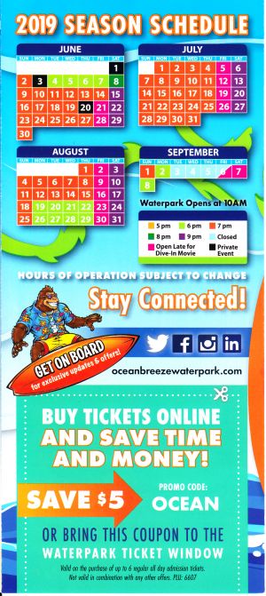Obtenez plus de sourires par gallon à chaque visite à Ocean Breeze Waterpark! Cette destination Caraïbes familial dispose de plus de 30 manèges, toboggans et attractions.