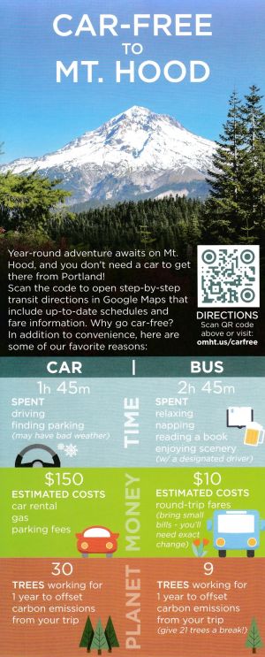 Car Free, step-by-step transit directions in Google Maps that include up-to-date schedules & fare info. for year-round transportation from Portland to Mt. Hood.